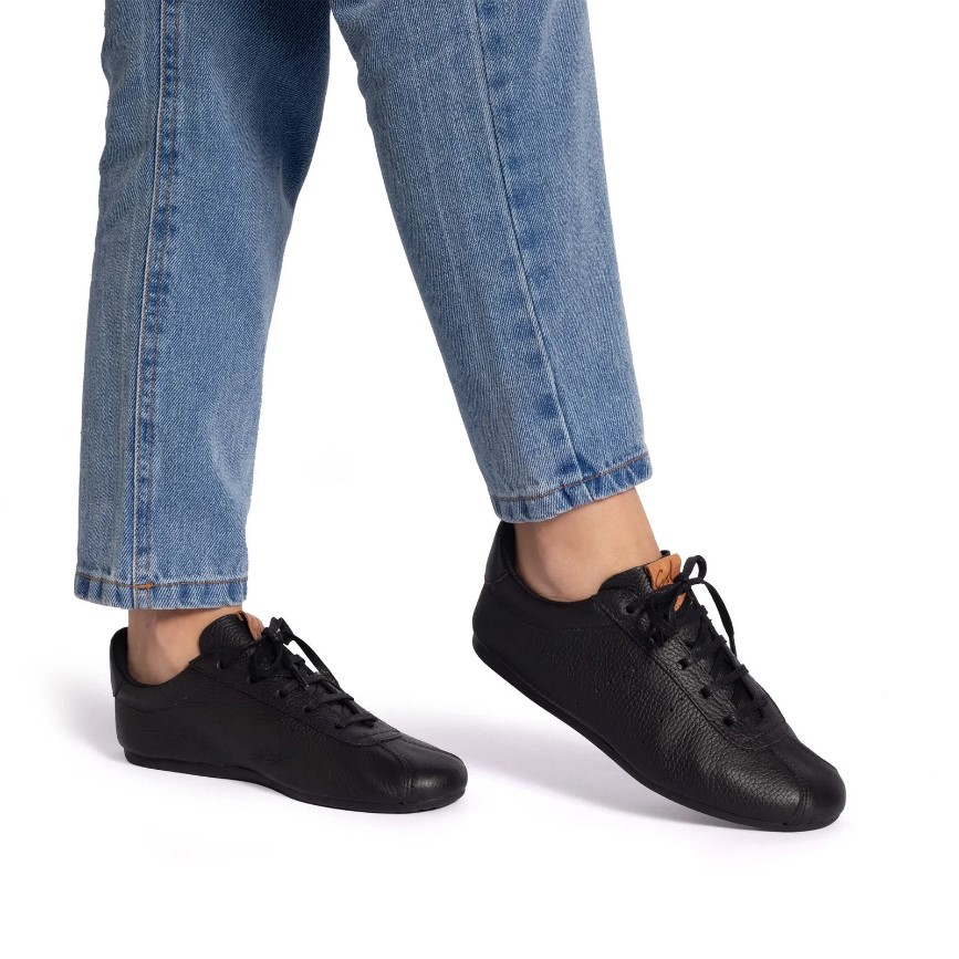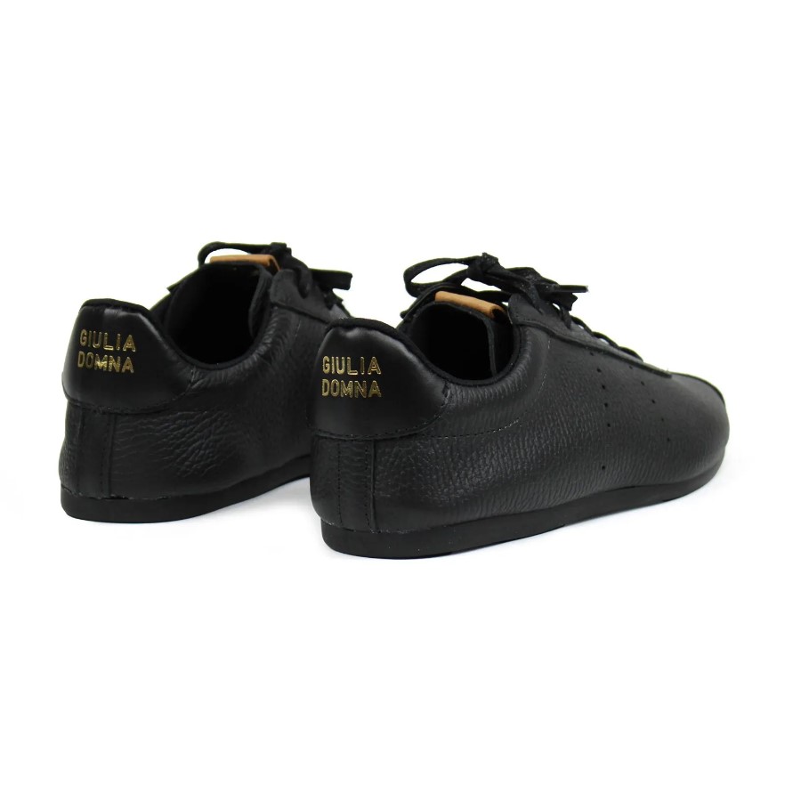 Tenis negros de piel, suela baja | Giulia Domna Negro